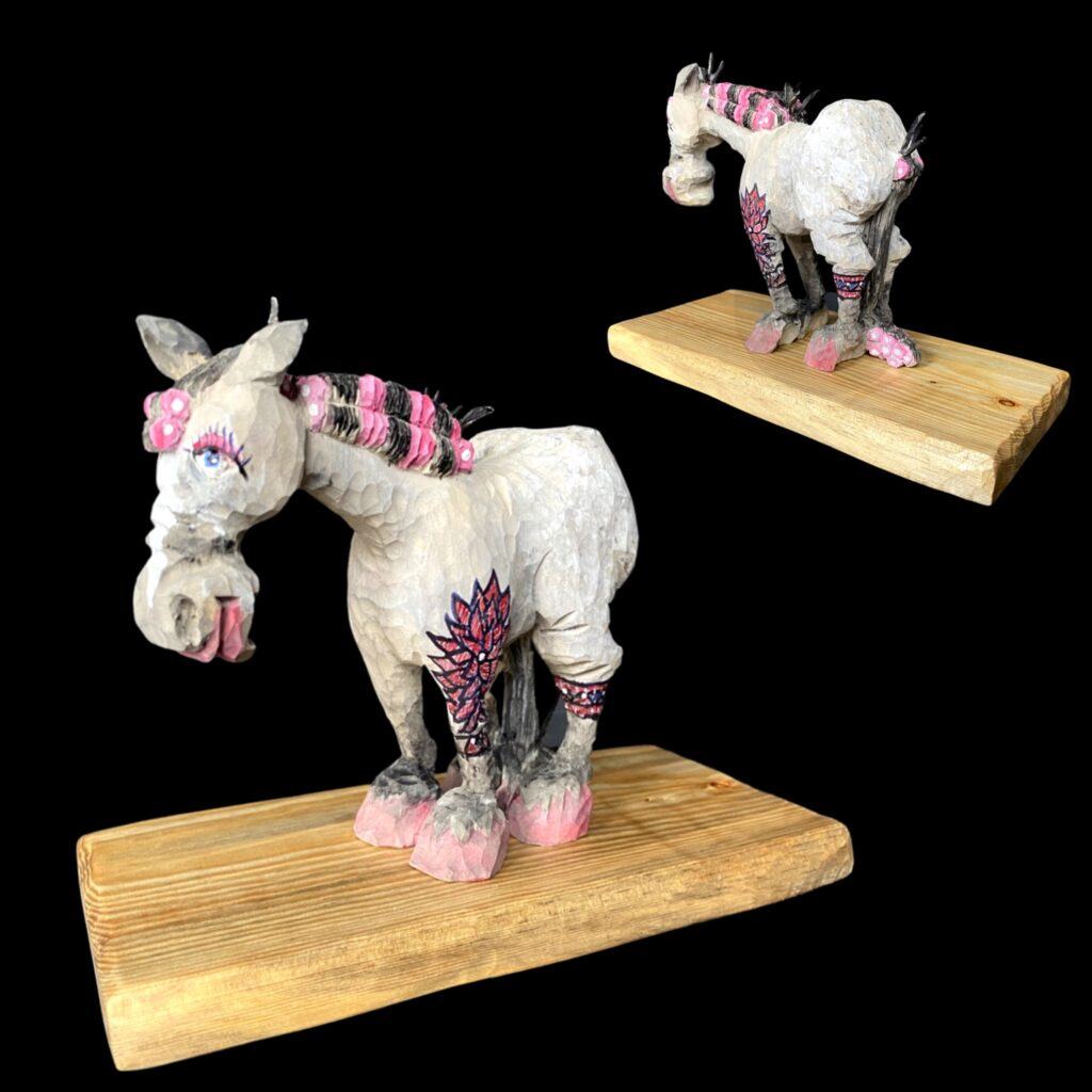 Polly’s signature Western horse series featuring hand-carved designs cast in small batches from molds she creates herself. Every pony is hand-painted, giving each piece its own expressive character.